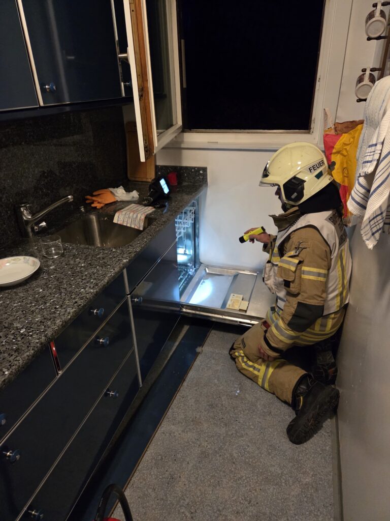 Aufgrund eines technischen Defekts geriet in den Abendstunden ein Geschirrspüler in Brand. Nach dem Eintreffen am Einsatzort begannen die Einsatzkräfte unverzüglich mit der Brandbekämpfung. Das betroffene Gerät wurde anschließend ausgebaut und ins Freie gebracht damit es vollständig abgelöscht werden konnte.