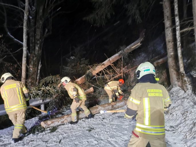 Um kurz nach 0 Uhr, in der Nacht auf den 28.02.2020, wurde die FF Kirchberg zu einem Sturmschaden am Krinbergweg 33 gerufen. 3 Bäume waren vom Sturmtief „Bianca“ entwurzelt worden und auf die Straße gefallen.