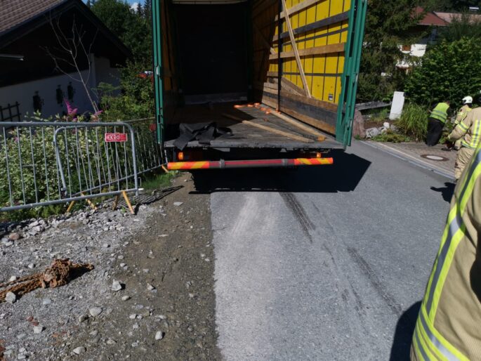 Durch einen technischen Defekt kam gestern vormittag ein LKW trotz eingelegter Handbremse beim Entladevorgang ins rutschen.