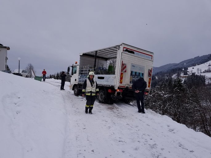 Die Feuerwehr Kirchberg unterstützte die Straßenmeisterei St. Johann beim Beseitigen der Ölspur.